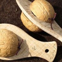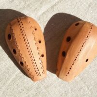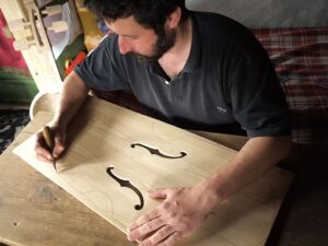 Húros- és ütőhangszerei testét alapvetően egy darab fából faragja, ragaszkodva a régi hangszerkészítési módszerekhez és szerszámokhoz.